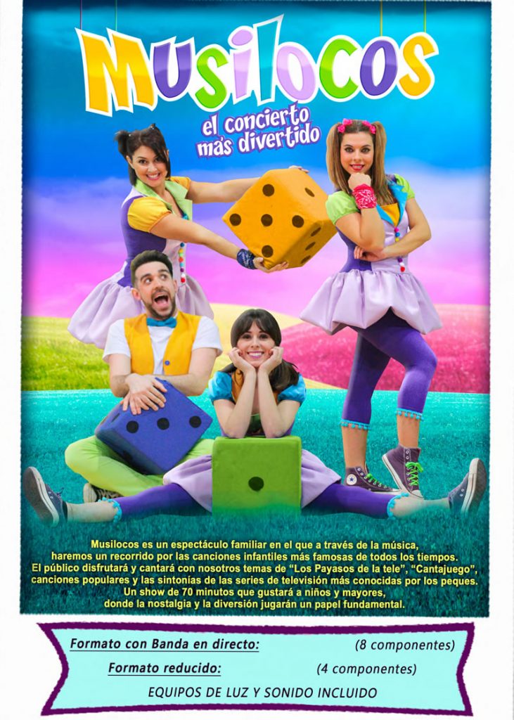 Musilocos, mas que un concierto infantil es un show familiar con las canciones infantiles que todos conocemos que hará vribar a grandes y pequeños con voces en directo, prepárate para un increíble viaje a través de las canciones infantiles más famosas de todos los tiempos en un show de 70 minutos.